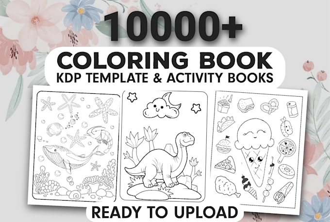 I will give you a 10k coloring pages book for kids. Animals, ant, airplane, ABC alphabet, baby animal, llama, mermaid, monster truck, motorbike, monster, mushroom, penguin, princess, robot, sheep, ship, slot, space, sunflower, tattoo, transport, truck, unicorn, vehicle You can either sell the coloring pages in a paperback or digital format.
